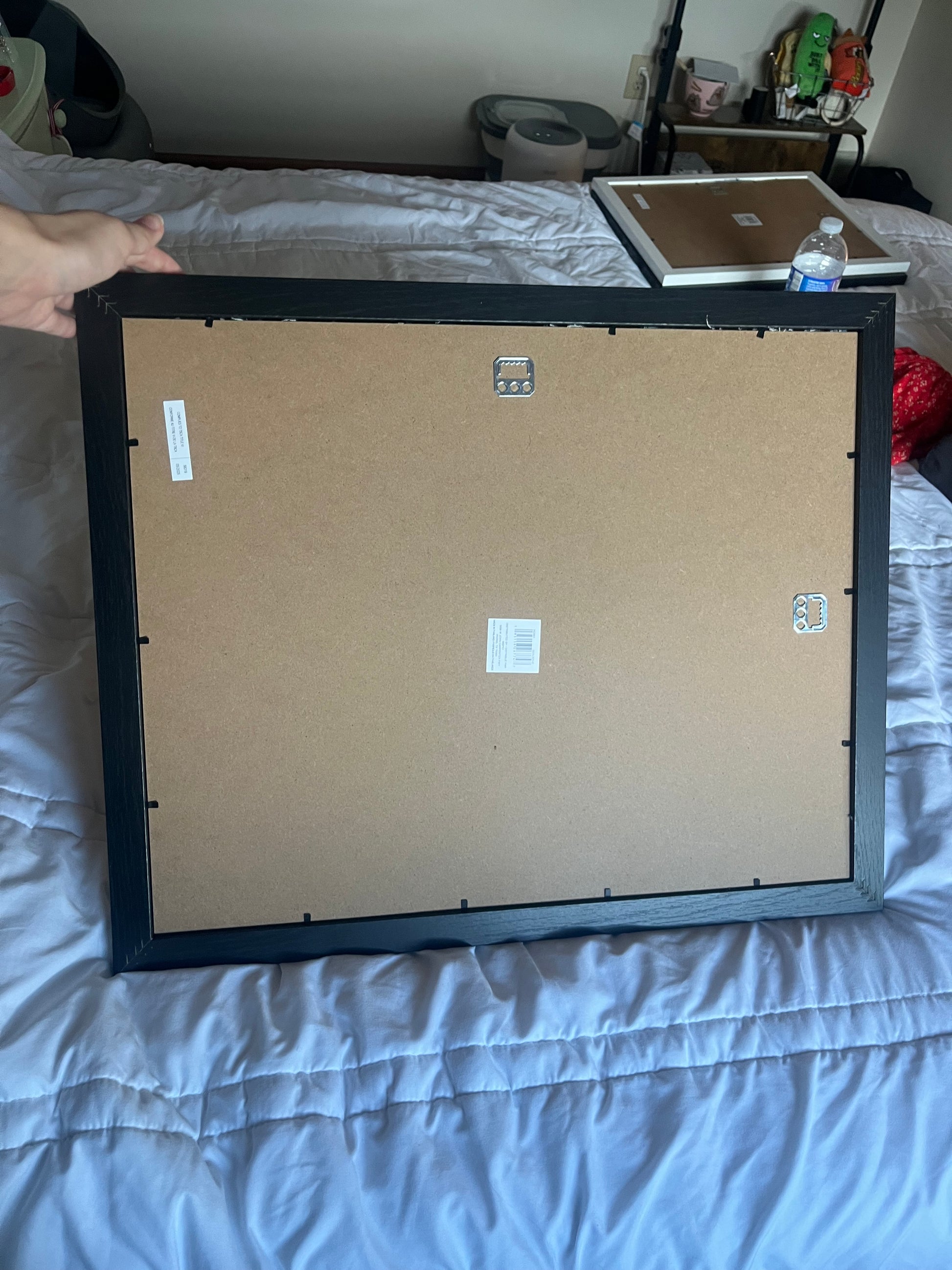 Made with thrifted clothing, acrylic paint, Gac 900, Fabric-Tac and tons of anxiety 🥰 Frame is 16x20 and made of wood & plastic. All of products are handmade so they are bound to be different. That’s part of the beauty.
