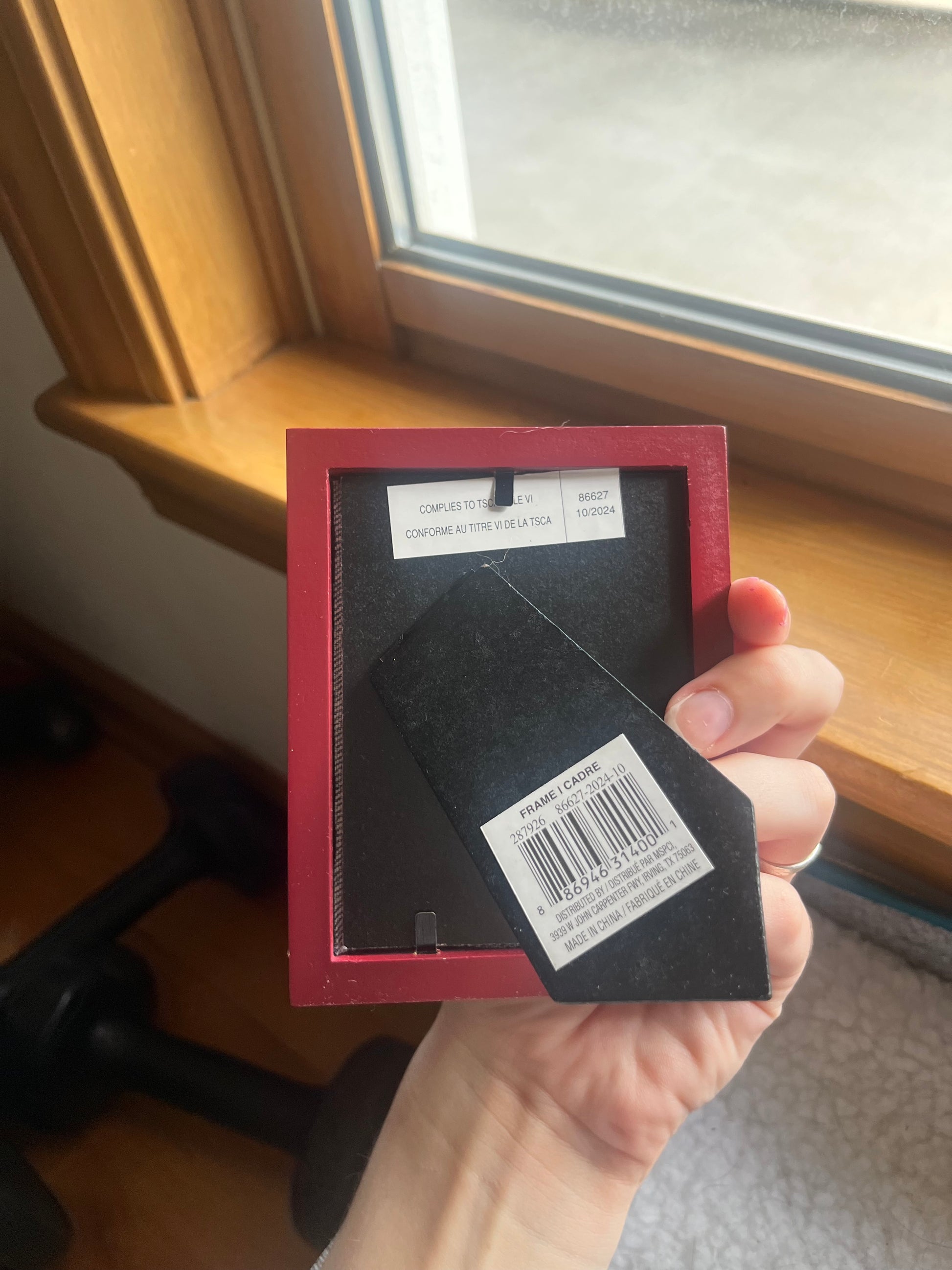 Made with thrifted clothing, acrylic paint, Gac 900, Fabric-Tac and tons of anxiety 🥰 Frame is 3x4 and made of wood & glass. All of products are handmade so they are bound to be different. That’s part of the beauty.