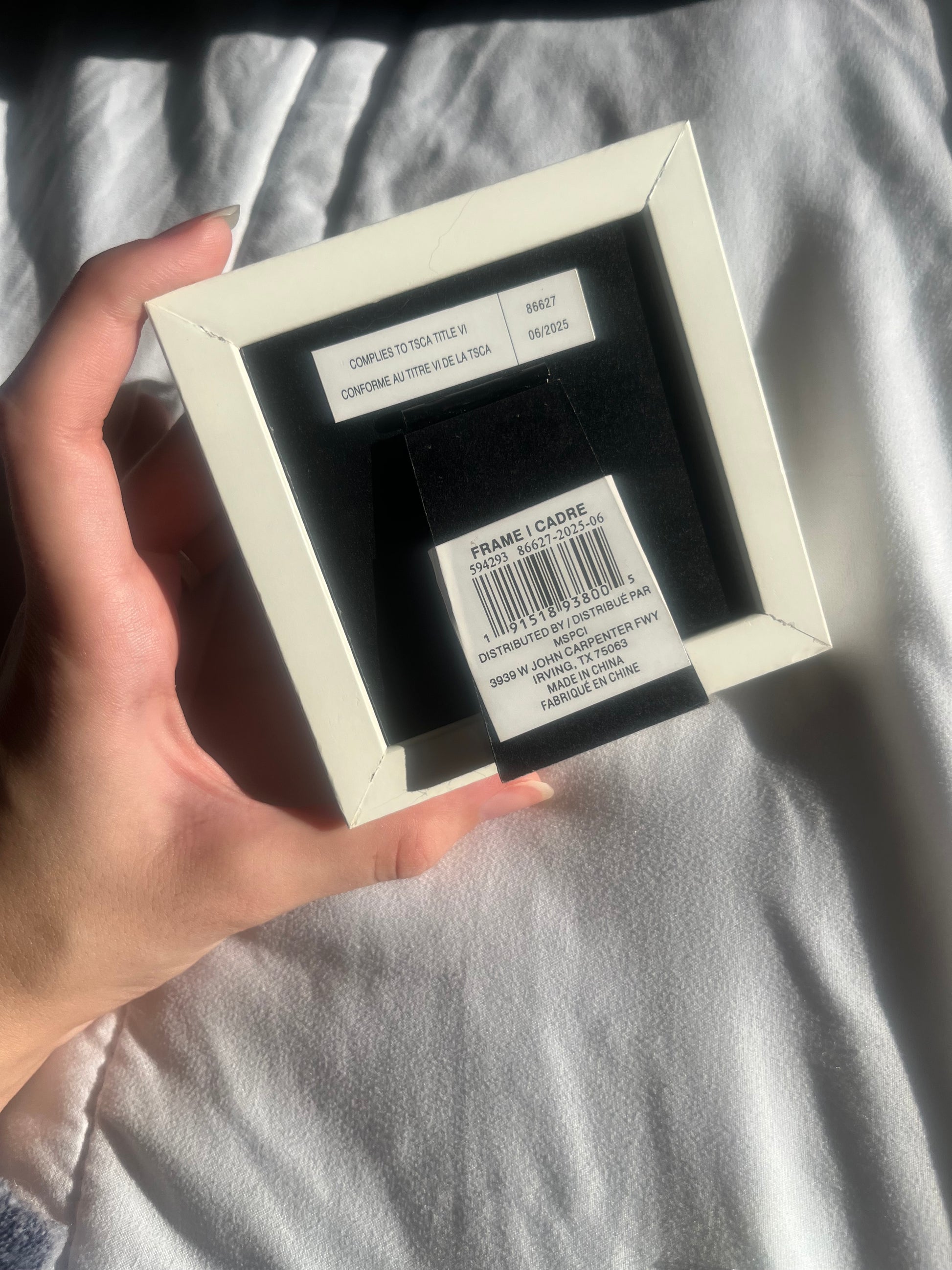 Made with thrifted clothing, acrylic paint, Gac 900, Fabric-Tac and tons of anxiety 🥰 Frame is 3x3 and made of wood & glass. All of products are handmade so they are bound to be different. That’s part of the beauty.