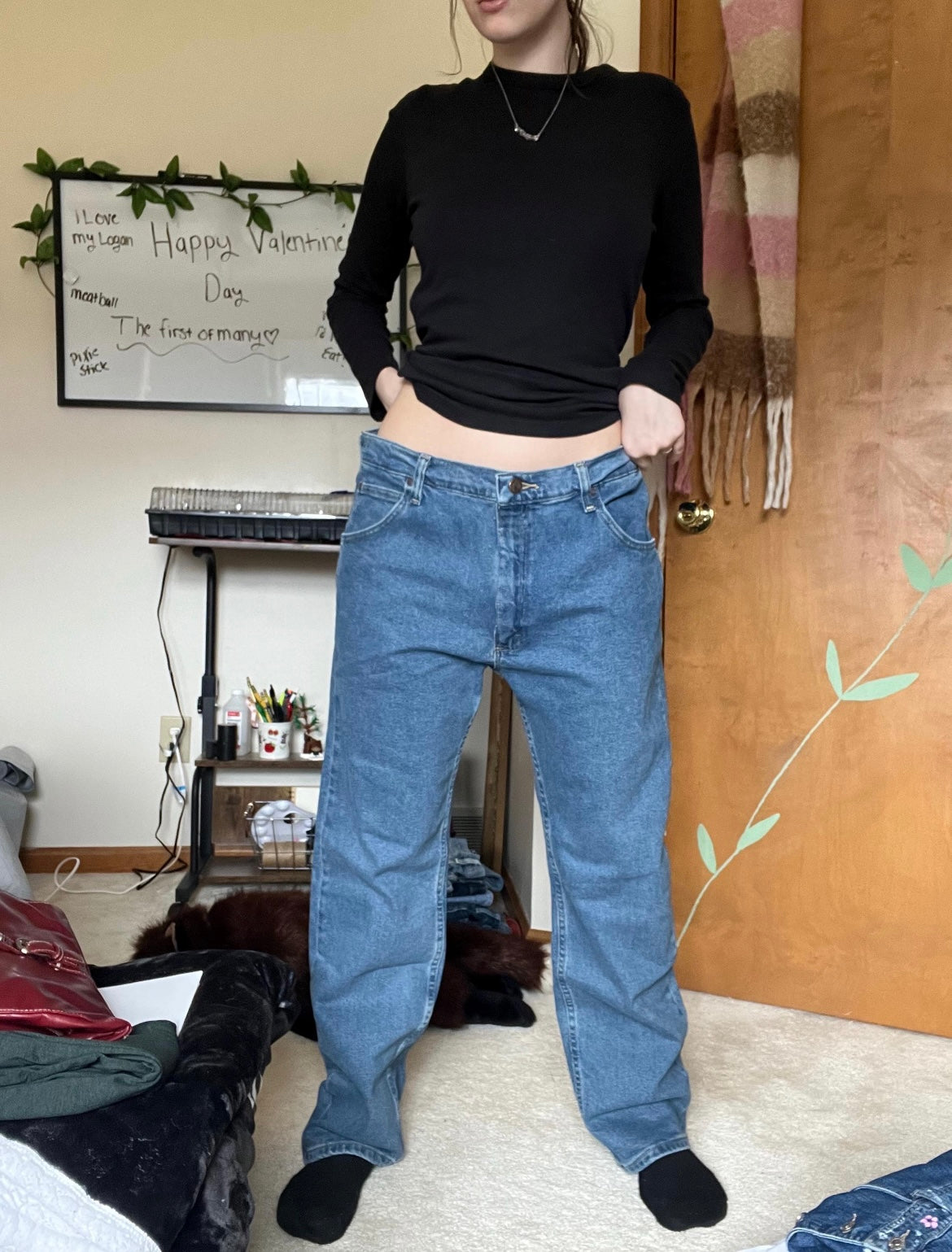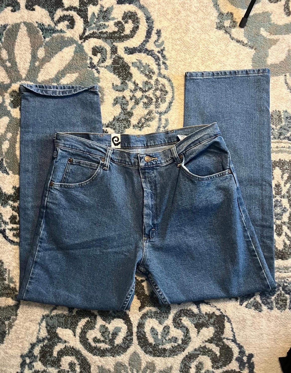 These jeans are 36x30 men’s, hand-painted, high-waisted and straight leg. For reference I’m 5'7 and size 4 in ae jeans. These do not fit me.